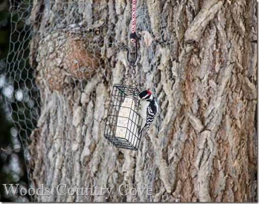 So far this morning the weather has been overcast and temps are mild and no winds and the dripping of snow is accruing , quite nice out really . I put a load of laundry in then went for a walk with my Miggs it was so nice and peaceful . When we got home I noticed the critters and birds were taking advantage of the mild temps and out and about playing and feasting at the feeders . I got my camera as usual lol and was comfortable with out freezing for a change took some photos and was enjoying the antics of birds and squirrels .